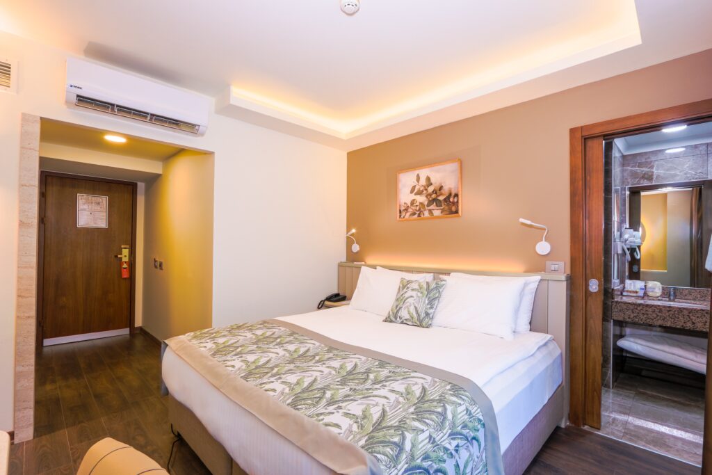 Ankara’nın konforlu ve lüks Standart Geniş Yataklı Queen odaları, bir adet çift kişilik yatakla donatılmış olup, konuklarına rahat bir konaklama deneyimi sunmaktadır. Her odada bulunan klima, merkezi ısıtma ve soğutma sistemleriyle her mevsimde konuklarını en uygun sıcaklıkta tutmaktadır.